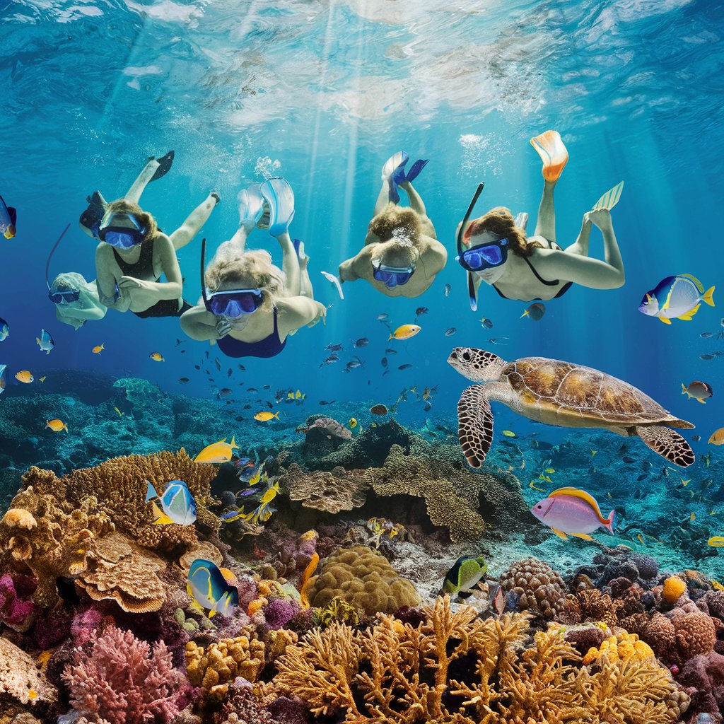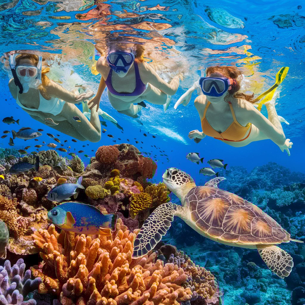 Snorkeling in Crystal-Clear Waters: Explore vibrant coral reefs and marine life during a guided snorkeling session in calm, turquoise waters.